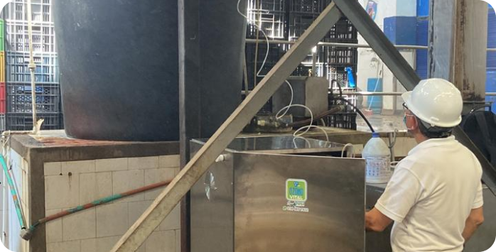 Es un potente desinfectante que elimina bacterias, virus y hongos en alimentos y superficies, garantizando mayor seguridad e higiene en esta industria.